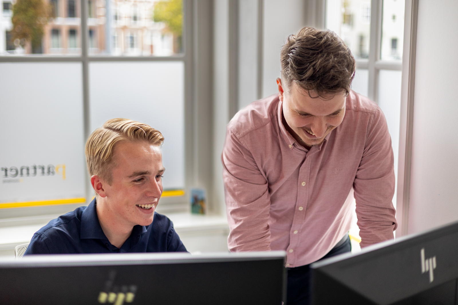 Wij begeleiden je zo goed mogelijk in jouw leertraject. We gaan meerdere keren met je in gesprek om af te stemmen of onze verwachtingen nog overeenkomen met die van jou. Ons doel is dat jij je ontwikkelt tot een volwaardig medewerker, hopelijk blijf je – als we allebei tevreden zijn – na je stage binnen ons kantoor plakken als werkstudent. Tijdens je tijdens krijg je voldoende ruimte om te werken aan schoolopdrachten en ontvang je, niet onbelangrijk, een leuke stagevergoeding.